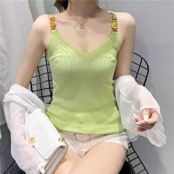 women tank medu metal button bra vers designer vest elastic slim fit sleeveless tshirt women's strap v-neck kint shirts 888, White