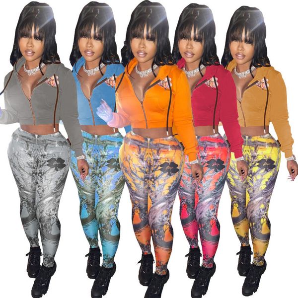 women tracksuits two pieces set designer digital printed hooded zipper coat trousers wear plush sweater pants ladies new outfits zfs2, Gray