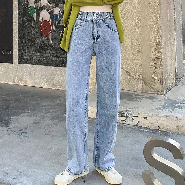 women wide leg jeans high waist loose cotton jean trousers woman korean clothes spring autumn casual denim pants baqueros mujer women's, Blue