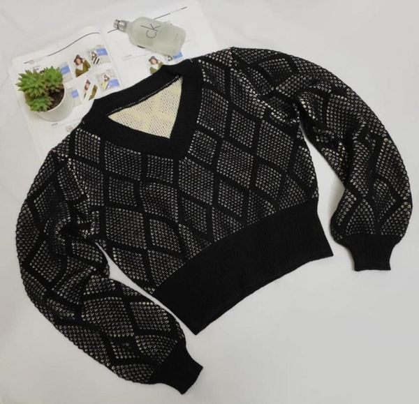 women039s knits ladies fall jacquard vneck slim short straight long sleeve sweater84678822595507, White