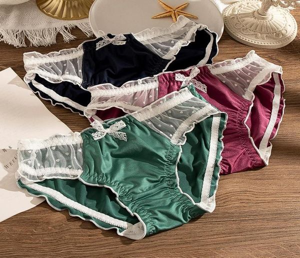 women039s panties japanese style milk silk sweet green women lace satin female underwear6417789, Black;pink