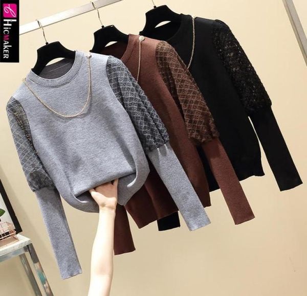 women039s sweaters women plus size oversize lace splicing chain design knitted sweater5161046, White;black