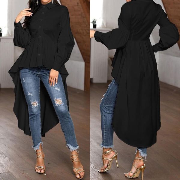 womens asymmetrical blouse zanzea 2021 elegant puff sleeve long sleeve shirts spring casual button down female lapel plus size, White