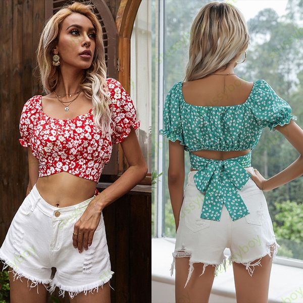 womens fashion streetwear short blouses woman printed square neck female puff short sleeve chiffon shirt, White