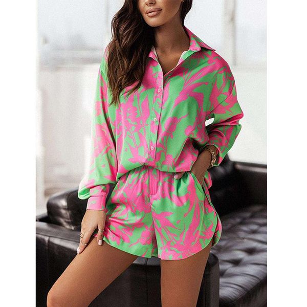 womens sleepwear shorts suit womens summer pajama set 2 pcs print ladies long sleeve sleepwear suit single breasted pijama suit for female 2, Black;red