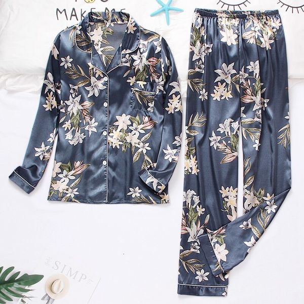 womens sleepwear silk satin pajamas set long sleeve two piece pj sets loungewear button down floral printing pijamas 230828, Black;red