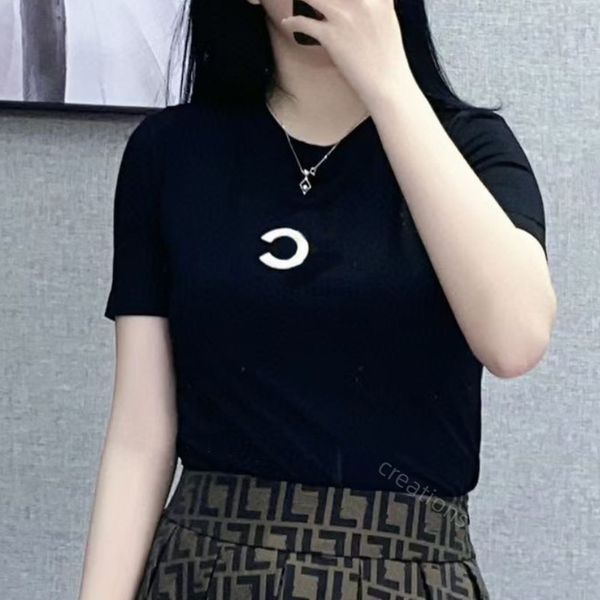 womens summer designer shirts 2023ss luxury brand c-letter embroidery short sleeves channel t shirts cotton women tees size xs-xl, White