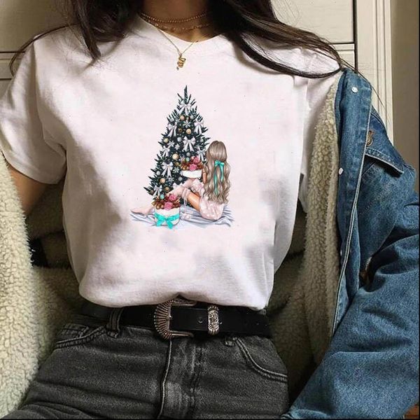 womens t shirt tree painting year short sleeve clothes merry christmas woman female kawaii tee tshirt women, White