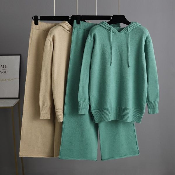womens two piece pants knit set solid winter women 2 s ted hooded sweater harem pant s pullover l warm trouser suit 221206, White