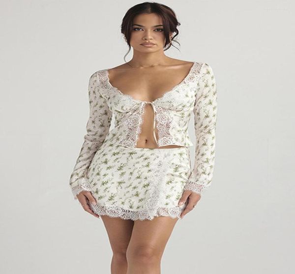 work dresses chic print satin lace beach vacation outfits for women summer matching up blouse shirt and mini wrap skirts sets2804288, White;black