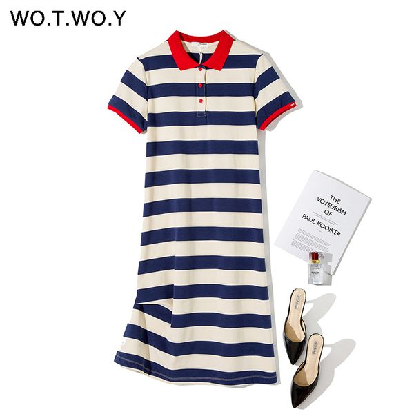 wotwoy summer striped plus size polo dress women knited cotton long t-shirt dresses women casual short-sleeved vestidos de 3xl lj200820, Black;gray