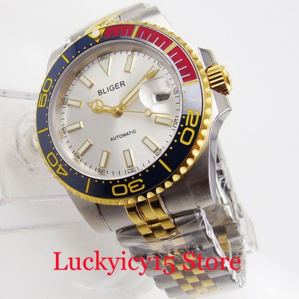 wristwatches brand mechanical watch sapphire glass gold coated bezel jubilee band miyota movement, Slivery;brown