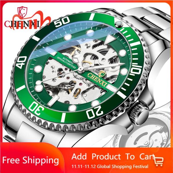 wristwatches brand water ghost -selling hollow automatic mechanical watch cross-border fashion waterproof men's, Slivery;brown