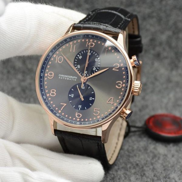 wristwatches chronograph quartz sport satch luxury men stainless steel black brown leather sapphire rose gold watch, Slivery;brown