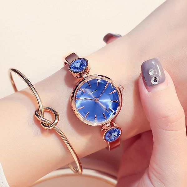 wristwatches kimio classic blue women bracelet watch ladies gem quartz watches clock female dress relogio feminino for woman, Slivery;brown