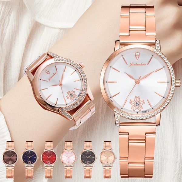wristwatches montre femme women's watches gift female clock fashion watch for girls stainless steel strap diamond dial luxury bracelet, Slivery;brown