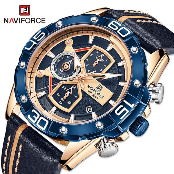 wristwatches naviforce sports watches for men luxury brand military waterproof genuine leather wrist watch man clock chronograph wrist watch, Slivery;brown