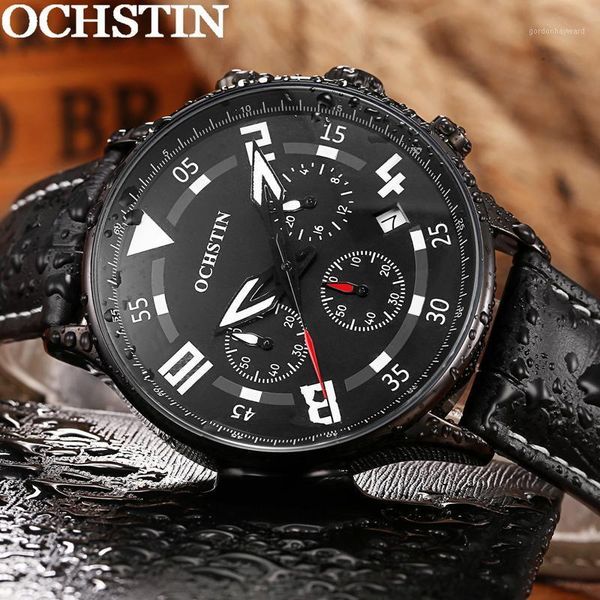 wristwatches ochstin chronograph man wristwatch calendar genuine leather men quartz watch military army sport male clock 05, Slivery;brown
