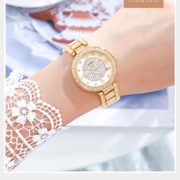 wristwatches skmei 1739 high-end fashion girl diamond mosaic quartz watch round european and american waterproof party, Slivery;brown