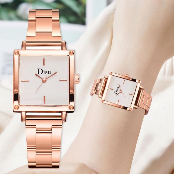 wristwatches square surface dial quartz watches for women luxury simple stainless steel bracelet woman watch fashion sports clock gift, Slivery;brown