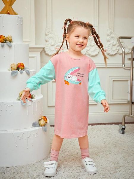 x wienterd toddler girls color block cartoon graphic dress she, Red;yellow