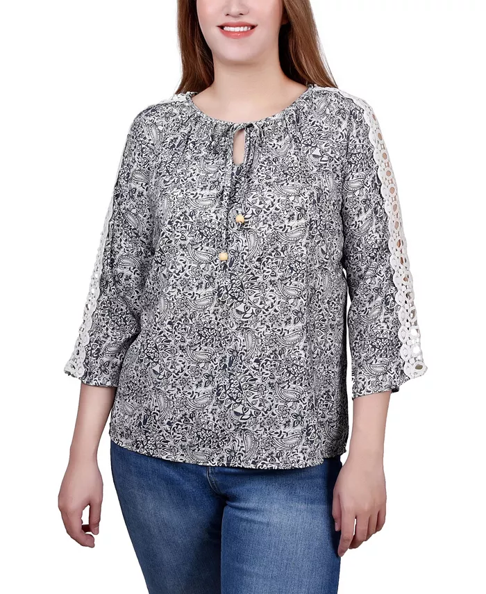 Укороченная туника с рукавом 3/4, кружевной отделкой и завязками на горловине NY Collection, синий
