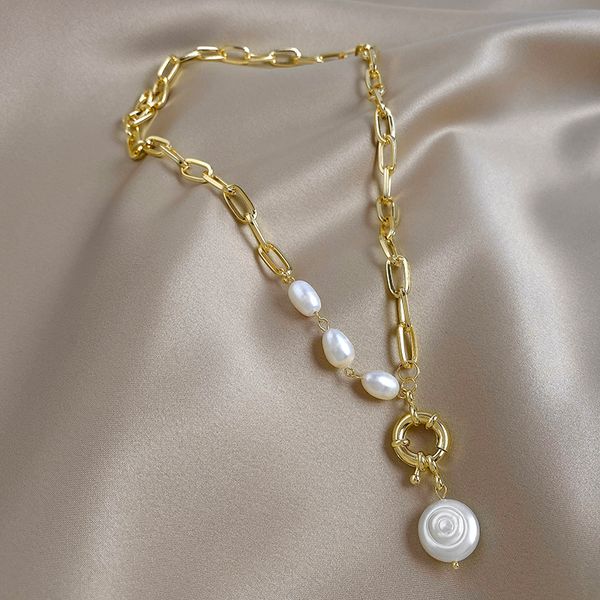 xianlan442 advanced sense of baroque pearl pendant necklace female ins cold wind collarbone the niche design feeling light chain o, Silver