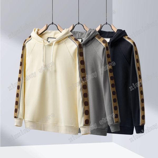 xinxinbuy men designer hoodies paris france reflective tape sleeve belt cotton women black gray apricot m-2xl, Black;brown