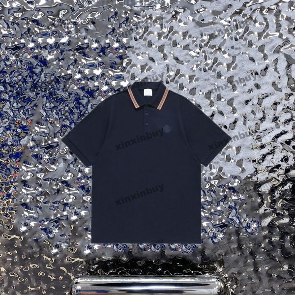 xinxinbuy men designer tee t shirt 23ss striped jacquard collar letter embroidery short sleeve cotton women black apricot white navy 318018, Black;brown