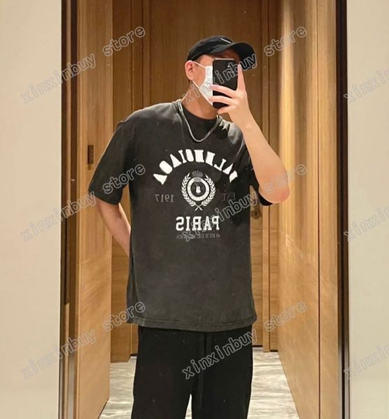 xinxinbuy men designer tee t shirt paris ear wheat crown print short sleeve cotton women red white black xs-2xl, Black;brown