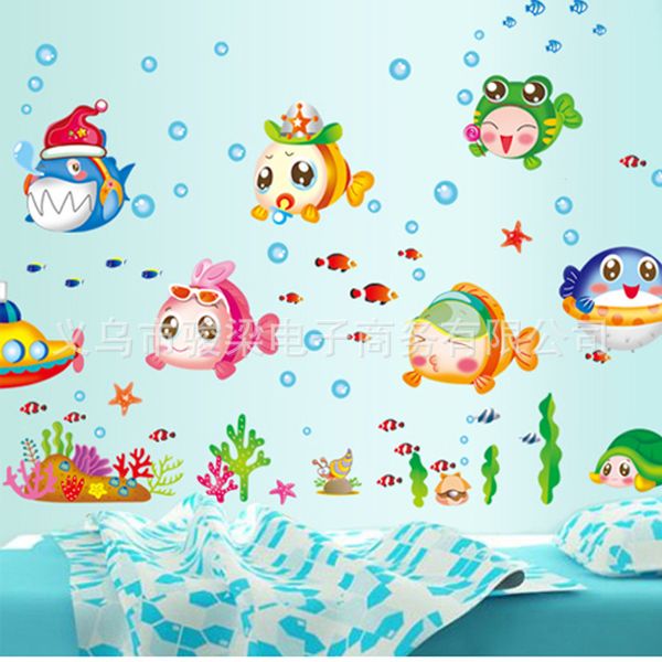 xy series undersea fish children's room removable wall stickers bedroom bathroom background xy8109 50*70