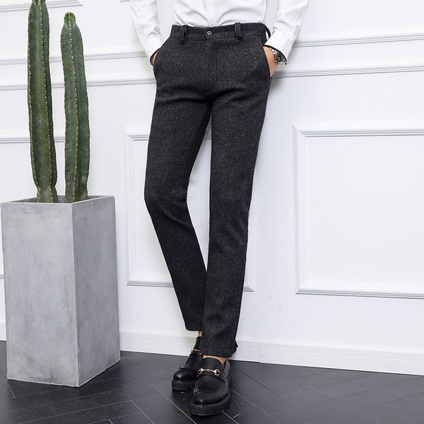 yasuguoji fashion thicken men dress pants classic business casual straight trousers loose suit pants high waist men, White;black