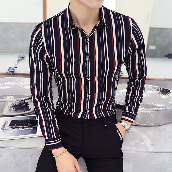 yc085 * new stripe man tidal club ktv bar casual long sleeve shirt men overalls big yards shirt p50 the stylist, White;black