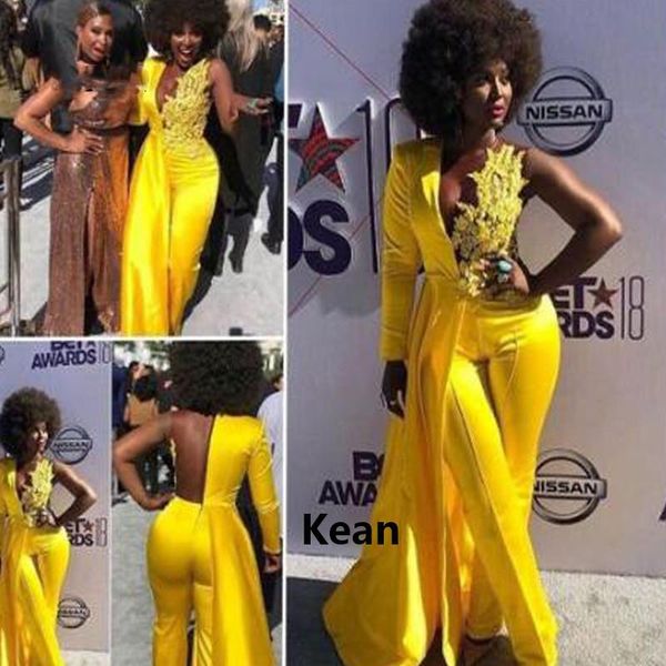 yellow fashion evening dresses jumpsuit long sleeve 2021 lace stain v-neck african plus size prom dress with pant suit, Black;red