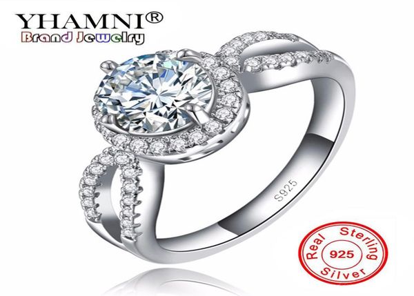 yhamni 100 pure silver luxury wedding ring laboratorycreated diamond jewelry fashion round engagement bague for women r0768381930, Slivery;golden
