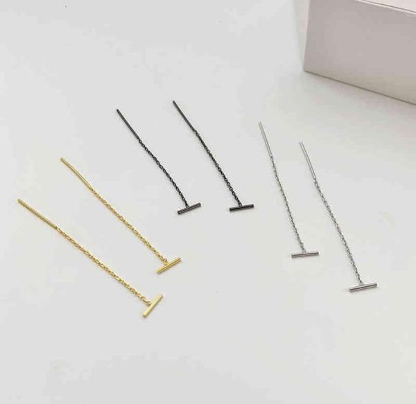 yinjia s925 silver tshaped cross chain earrings long modify the face show thin and versatile simple earrings fashion3147358, Golden;silver
