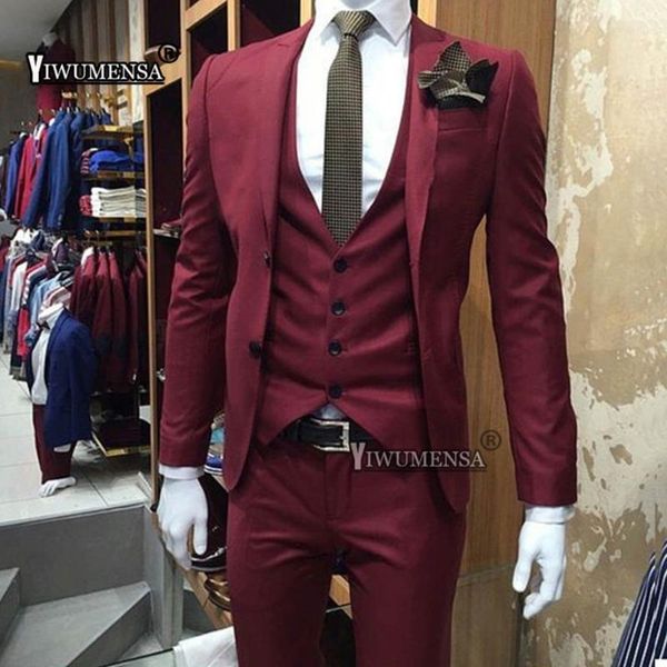 yiwumensa anzug herren 2021 burgundy mens suits traje hombre formal costume homme mariage groom suit tuxedo smoking man men's & blazers, White;black