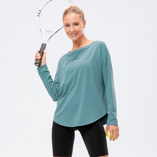 yoga outfit autumn winter women sweatshirt loose long sleeve shirt high elasticity nylon fitness sports running gym clothing