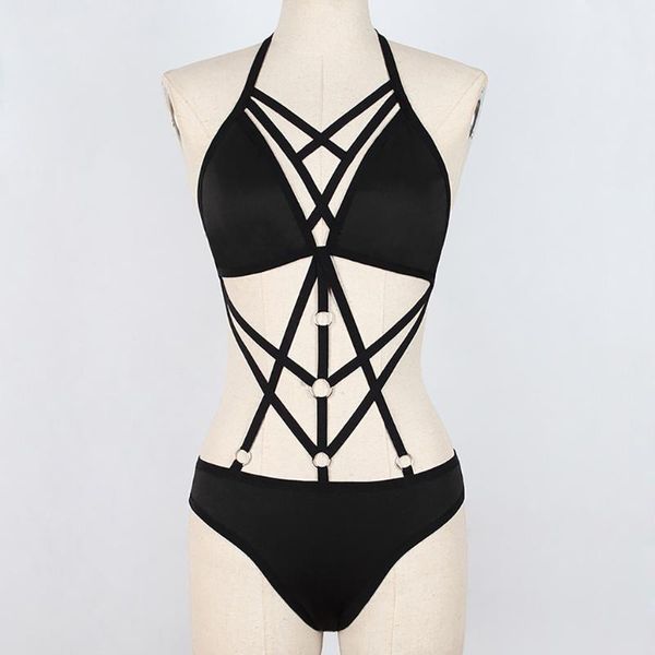 yoga outfit black bandage erotic lingerie alluring women cage bra strappy hollow out underwear see-through couple gift lenceria