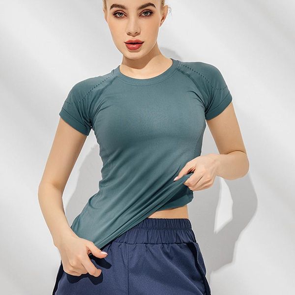 yoga outfit simpold summer thin t-shirt women hollow out design elastic fabric slim wasit short sleeve sport femal gym clohte
