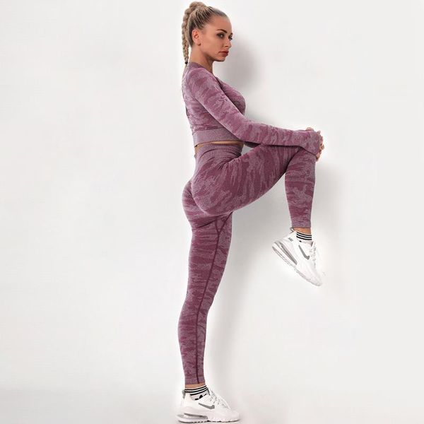 yoga outfit suit seamless set women 2 piece gym sportwear booty scrunch sport leggings and long sleeve shirts high elastic workout