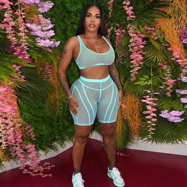 yoga outfit women's clothing 2021 see through mesh underwear set women bra and tight shorts 2 piece suit workout gym wear