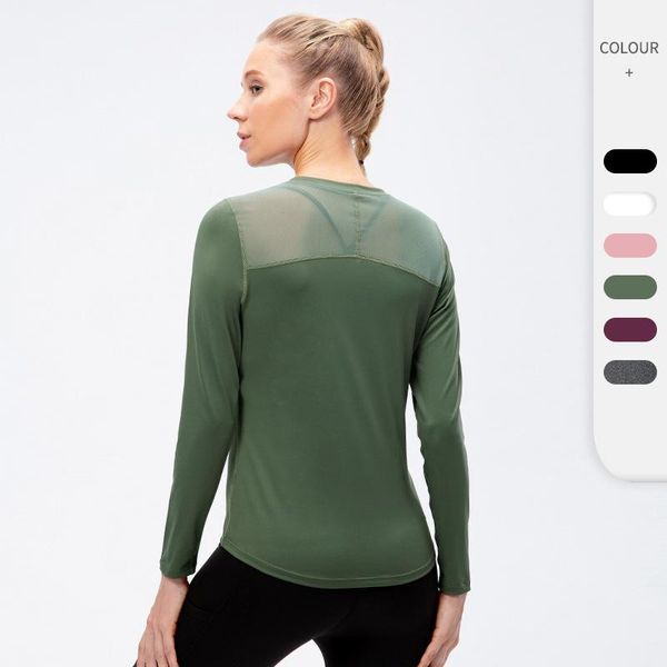 yoga outfit women's sports wear for fitness running long sleeve mesh stitching gym woman sport shirt autumn thermo workout clothing