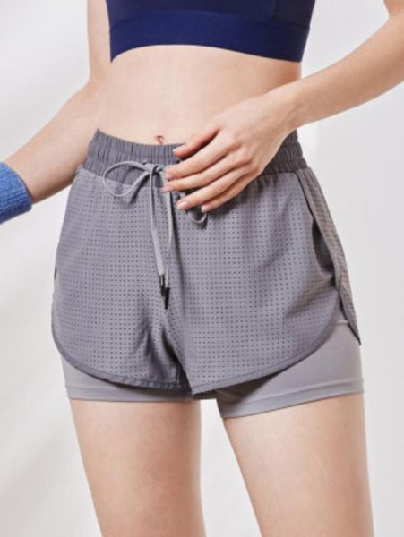 yoga outfits 2 in 1 fake two-piece sports shorts female summer thin section breathable fitness loose gray / black s l xl, White;red