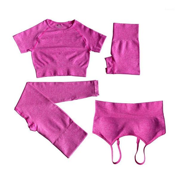 yoga outfits 4pcs seamless sport set women female 4 four piece blue crop bra shorts legging wear ftines suit workout outfit gym set1, White;red