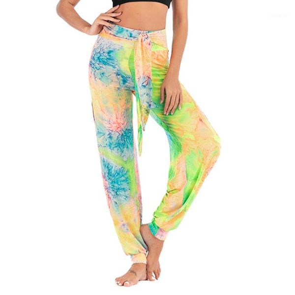 yoga outfits tie dye printed sweatpants hodmewear casual workout dancing show hip hop pants 2021 summer high waist trousers1, White;red