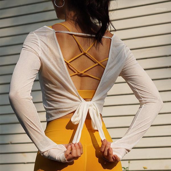 yoga outfits women's open back fitness breathable sportswear t-shirt bandage quick-drying running shirts sweatshirt 1, White;red
