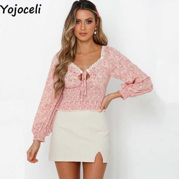 yojoceli lace fringe print blouse women autumn casual cool elegant beach cute female blusas 210609, White