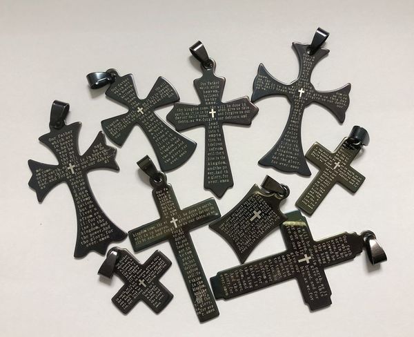 yqtdmy 9 pcs the lord's prayer cross stainless steel biker pendant, Silver