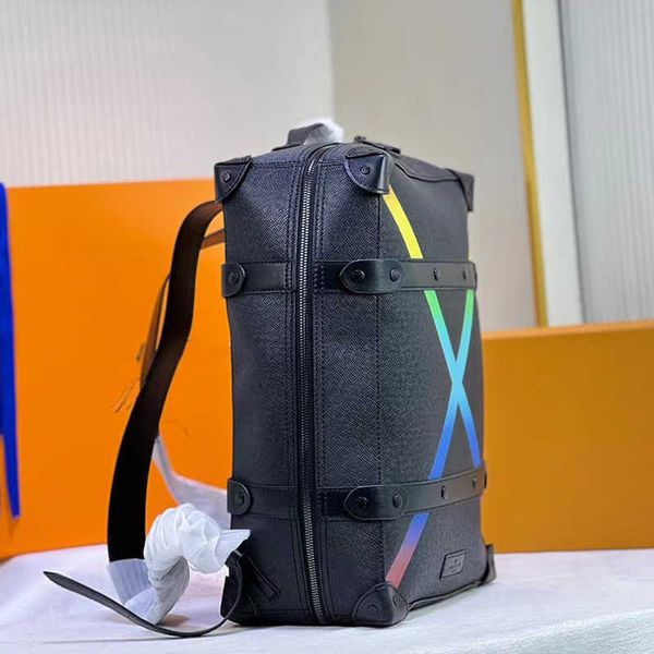 yuchengbags 2022mens black leather backpack luxurys designer knapsack with colour x criss-cross decorate schoolbag satchel back, Blue;pink